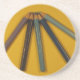 Uma vida estática de lápis coloridos com fundo amarelo.