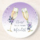 Nosso presente de porta copos único apresenta dois copos de champanhe prontos para brindar a honra de aniversário, cujo nome é escrito na porta copos em tipografia elegante de roteiro. Grascos florais em lavanda poeirenta e em palha escura decoram os óculos cheios de champanhe de ouro. Poeira de brilho roxo e lacrimejante sobre fundo ombre lavanda adiciona um toque feminino a este presente de aniversário de um tipo. Todo texto pode ser facilmente revisado usando o menu suspenso personalização.