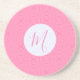 Sandstone coaster features a fractal background of light pink squiggly squares. Pink initial resides inside a white circle of squiggly squares. Lovely housewarming gift, Mother's Day, or birthday gift for the right person.