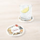 "Mas primeiro, COFFEE" diz o centro desta porta copos de bebidas divertidas. O texto, em cinza e marrom, está no centro de uma coroa formada por copos de café, grãos de café e utensílios de cozinha relacionados ao café. Bonita!