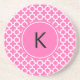 Branco monograma em porta copos de arenito de padrão quatrefoil cor-de-rosa quente.