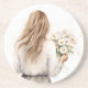 Arte aquarela de uma jovem com buquê margarida sobre fundo branco.