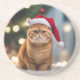 Um gato exótico e bonito de gengibre de shorthair vestindo um chapéu de Papai Noel.