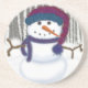 Puffy, o boneco de neve está preparado para a primeira queda de neve da temporada de inverno. Ele está escondido em seu chapéu colorido e fofo e cachecol.