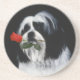 Uma fotografia da raça do cão de Shih Tzu que guardara um rosa em sua boca.