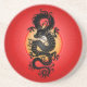 Este design chinês preto de fluxo do dragão é destacado para dar-lhe um brilho claro na superfície. O dragão tribal serpenteia ao redor da cabeça para baixo à cauda ondulada. Quatro garras afiadas alcançam para fora do corpo que cria um olhar agressivo. Um sol circular, estilizado aparece apenas atrás da serpente com estrela vermelha brilhante um brilho estourado em todos os sentidos. Este design à moda é uma tomada bonita no dragão do chinês tradicional.