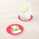 Esta porta copos de arenito fantástica apresenta uma imagem design gráfica de um gato oriental de ondas brancas sortudo. O gato tem belos olhos de ouro e está vestindo um medalhão de ouro no colarinho ao redor do pescoço. O gato tem orelhas rosadas e sussurros. Este gatinho bonitinho está segurando um token de ouro com uma entrada de jade verde e uma mensagem no texto de ouro que diz "Boa Sorte".