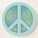 Um gráfico estilizado de terra com o símbolo da paz esculpido dele.