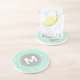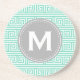 Um padrão-chave grego giro, bonito, moderno, geométrico, em verde-menta e branco, com um quadro de etiqueta circular de cinza para a letra inicial do monograma personalizado. Um impressão de padrão legal, feminino e elegante com um toque pessoal que fará uma tendência e um dom único para garotas/mulheres.
