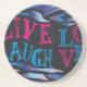 Zebra listra em tons de blues e roxo com quadro colorido Live, Laugh, Love