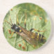 Esta bonito porta copos de arenito apresenta uma fotografia aproximada de uma mosca preta e amarela numa folha hollyhock. A foto foi tirada usando macro fotografia para revelar todos os pequenos detalhes como as veias-folha no hollyhock e o padrão nas asas da mosca-do-mar.