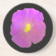 Esta bonito porta copos de arenito apresenta uma fotografia de uma flor de petúnia que foi manipulada para fazer o centro da flor brilhar amarelo-claro. O resto da flor é uma bonito sombra de roxo.