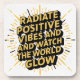 Porta copos inspiracional com a frase "Radiar vibrações positivas e ver o mundo brilhar".