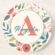 Pretty Blush Pink Floral Botanical Monogram beverage coaster