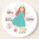 Uma menina de cabelos castanhos com um bonito vestido azul e uma coroa princesa com um fundo de flores cor-de-rosa sobre novas camisetas irmãs, botões, sacos de tote, correntes-chave, cartões, diários, travesseiros, etiquetas de bagagem, relógios de parede e outros itens que a nova irmã mais velha adorará possuir!