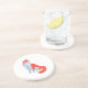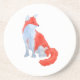 Ilustração divertida e desenhada à mão de uma pequena raposa fofa num porta-copos de arenito. Canecas combinando disponíveis. Obra de arte: Pastel a óleo sobre papel. Direitos autorais Dominic A. White. Todos os direitos reservados.