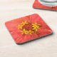 Esta incrível porta copos de cortiça apresenta uma fotografia detalhada e detalhada de uma flor bonito vermelha da Zinnia. A fotografia foi tirada por meio de macrofotografia e mostra as vibrantes cores da pétala vermelha e amarela e o detalhe intrincado dessa bela flor.
