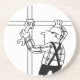 Porta copos Scaffolder. Ilustração divertida no estilo cartoon de uma Scaffolder com Scaffolding. Presente Scaffolder.