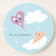 O amor está no ar, dois corações voando no céu entre nuvens e flocos de neve e dizendo Seja meu Namorados!