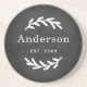 Esta simples e elegante montanha-russa de bebidas monogramas apresenta galhos brancos de louros de folha branca que enquadram um sobrenome familiar. Um belo presente para recém-casados ou novos donos de casa. A imagem de fundo preto rústica pode ser removida e a cor de fundo impressa pode ser modificada para que o design se coordene perfeitamente com a decoração inicial.