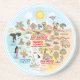 Um desenho do sul da Califórnia - mostrando Los Angeles, Orange County e San Diego - personagens de desenho animados de todo tipo de natação e salto e brincam sob o brilhante sol da Califórnia brilhando acima de tudo.