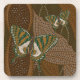 Ochre, preto, branco e pontos verdes criam padrões semelhantes a ondas e acentuam as manchas nesta borboleta raquidiana, inspirada pela arte pontual tradicional da população aborígene da Austrália.