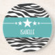 Tendy e moderna Porta copos Sassy Star Zebra Sandstone, com um fundo de impressão em preto e branco e uma ousada borda turquesa adornada com um divertido filme estelar. Este design feminino pode ser personalizado com o texto personalizado de sua escolha. Clique em "Personalizar" para encontrar mais opções de personalização.
