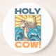 Uma vaca engraçada numa porta copos de arenito novidade. Use "Personalizar este modelo" para ajustar o texto "VACA ESPIA!" e criar um item exclusivo e personalizado. Uma peça de palavras com uma vaca dramática em um roupão, segurando um tostão e um pergaminho religioso de um pastor, partando ondas com um ouro de rajada de sol atrás.