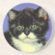 Porta copos de Sandstone com um gatinho de smoking ao estilo de Vincent van Gogh! Este gatinho bonito se posiciona com flores roxas. Um presente magnífico para amantes de gatos e colecionadores de arte holandeses!