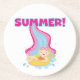 Um design bonito para o verão, as características uma menina de cabelo loura no fato de banho e o anel que vem para baixo o texto da corrediça de água e do rosa quente e do azul que lê o VERÃO! T-shirt do verão, bodysuits, babadores, canecas, cartões, bolsas, etiquetas, lembranças, travesseiros, e muito mais.