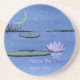 Uma aquarela de um lírio de lótus em um lago sob uma lua crescente adorna este 'Peace Be On You!' Porta copo! Personalize mudando o texto para se adequar!