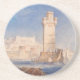 Rodes. Joseph Mallord William Turner (1775 - 1851). Uma paisagem agradável em tons rosas e azuis. No primeiro plano estão barcos e naves na baía perto das paredes da cidade. no meio, há uma torre alta. Ao fundo há uma cidade com casas de pedra. Reprodução de famosas imagens de arte no dominio público.