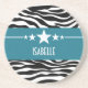 Tendy e moderna Porta copos Sassy Star Zebra Sandstone apresentando um fundo de impressão em preto e branco e uma ousada borda azul real adornada com um divertido motivo de estrela. Este design feminino pode ser personalizado com o texto personalizado de sua escolha. Clique em "Personalizar" para encontrar mais opções de personalização.