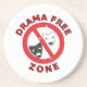 Um sinal de trânsito com as palavras: zona livre do drama. Texto com imagens das máscaras gregas da comédia e da tragédia. Efeito perturbado aplicado ao design.