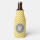 Mantenha a sua bebida fria com este refrigerador de frasco amarelo e branco, feito em padrão de zigue-zague cebola. Personalize o monograma branco de uma letra, no disco de texto da cinza, para você mesmo ou como uma ideia de presente de excelente.