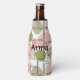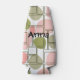Este refrigerador de garrafas tem um design geométrico de bolhas cor-de-rosa e verdes com contornos de retângulos verdes mais escuros no topo. Como o design, mas quer uma cor diferente? Me mande mensagem.