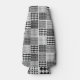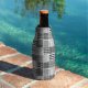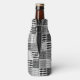 Este refrigerador de garrafas tem um design de quadrados Boho com padrões em preto e branco.