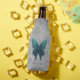 Mantenha suas bebidas frias durante as férias de verão com um refrigerador de garrafas personalizadas com borboleta esmaltada. O design de resfriamento apresenta uma borboleta com joias vibrantes contra uma cor damasco de cinza elegante. Itens de presentes adicionais disponíveis com este design, bem como uma variedade de cores.