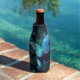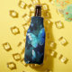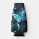 Fabulosa, brilhante, azul e amarela, borboleta noturna sobre fundo escuro.