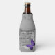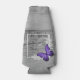 Mantenha suas bebidas frias durante as férias de verão com um refrigerador de garrafas personalizadas com borboleta púrpura. O design de resfriamento apresenta uma borboleta vibrante que repousa sobre uma folhagem delicada com um espaço para adicionar o seu nome contra um fundo de madeira rústico. Itens de presentes adicionais disponíveis com este design, bem como uma variedade de cores.