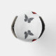 Bando de borboletas voadoras, realistas, vermelhas e pretas em fundo branco com gotas de tinta.