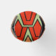 Este refrigerador de garrafas tem um design de tulipas de deco de arte de pentágonos e trapezoides em diferentes tons de laranja.