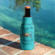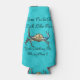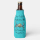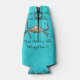 Em destaque neste 'stubby', o suporte de resfriador em um fundo azul aqua é um caranguejo nadador azul com um logo engraçado de caranguejos apanhadores.