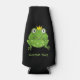 Cartoon sapo verde com ouro. Príncipe sapo. Cor de fundo personalizada. Texto personalizado.