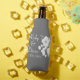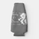 Bela, moderna e elegante garrafa de casamento / pode resfriar design com flores brancas bonito com texto branco personalizável sobre fundo cinza mais escuro