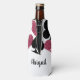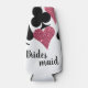 Deixe aquele gargalo comprido ainda mais elegante com um resfriador de latas "Dama de Honra" totalmente personalizado, apresentando uma dispersão de naipes em brilho rosa cintilante e preto com texto personalizado para o nome da dama de honra. Reúna as amigas para celebrar a noiva com um fim de semana na sortuda Las Vegas ou simplesmente uma noite ao estilo Vegas!