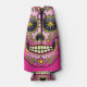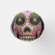 O crânio de açúcar Dia de los Muertos é tão colorido em magenta com flores e olhos brilhantes de ouro.