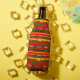 Esta garrafa de resfriador tem a décima design de Junta de listras vermelhas, verdes e amarelas com correntes de punho quebradas e a palavra "dezenove" se repetindo por todo o design.