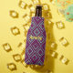 Este refrigerador de garrafas tem um design de diamantes e semimouros em aqua em um campo de roxo. Como esta design, mas quer cores diferentes? Me mande mensagem.