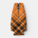 Crachá da crista de Halloween com morcego voador rodeado por uma correia e fivela sobre fundo tartano. Texto personalizado.